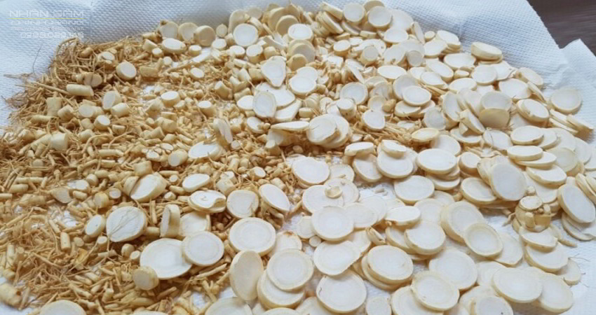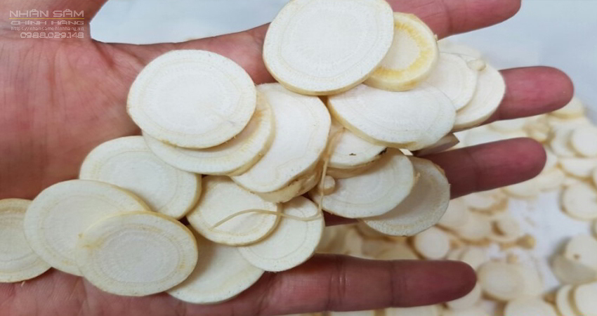 Cắt bỏ đầu củ Sâm, thái thành lát mỏng ( khuyến khích dùng dao tre hoặc loại dao phi kim loại tránh làm giảm dược tính của Sâm Tươi Hàn Quốc 6 năm tuổi)