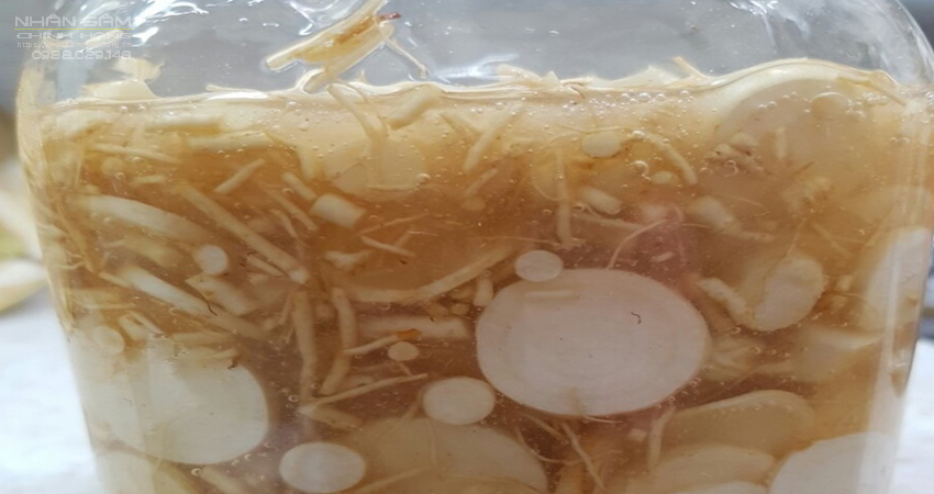 Cho toàn bộ Củ Sâm đã thái lát vào bình.